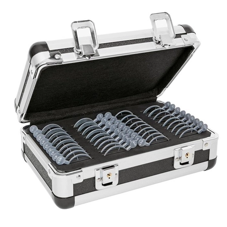 Zestaw 36 sztuk pryzmatycznych soczewek próbnych. Kompatybilne ze standardowymi soczewkami próbnymi o wymiarze 38 mm.