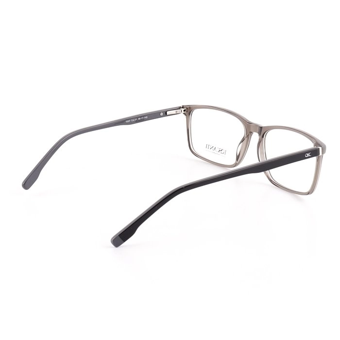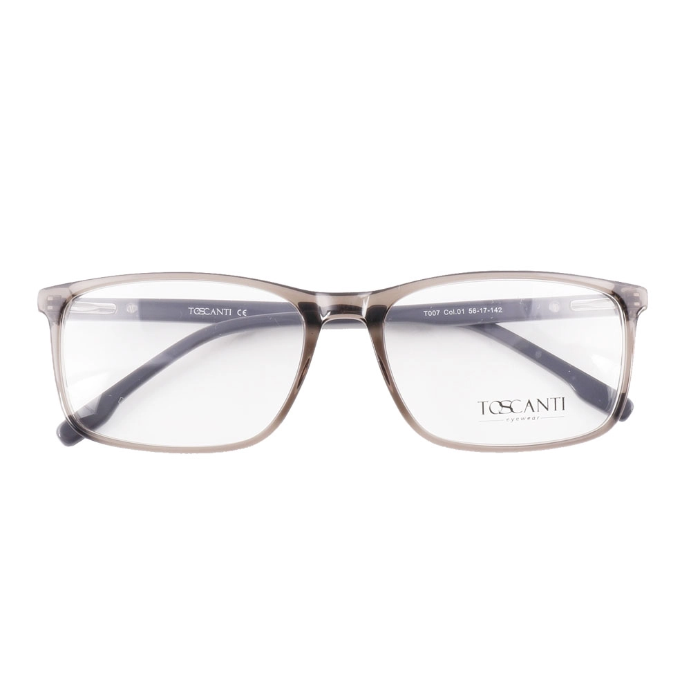 Oprawa korekcyjna marki Toscanti. Posiada sprężyste zawiasy typu flex, które ułatwiają nakładanie okularów. Dodatkowo oprawa lepiej dopasowuje się do kształtu głowy, a zauszniki nie uciskają skroni. Wysoka jakość zastosowanych materiałów oraz trwała powłoka lakieru zapewnia długi czas użytkowania. Oprawa wykonana jest z acetatu co sprawia, że jest lekka i trwała. Okulary odpowiednio trzymają się na nosie, dzięki dobrze wyprofilowanemu nanośnikowi.