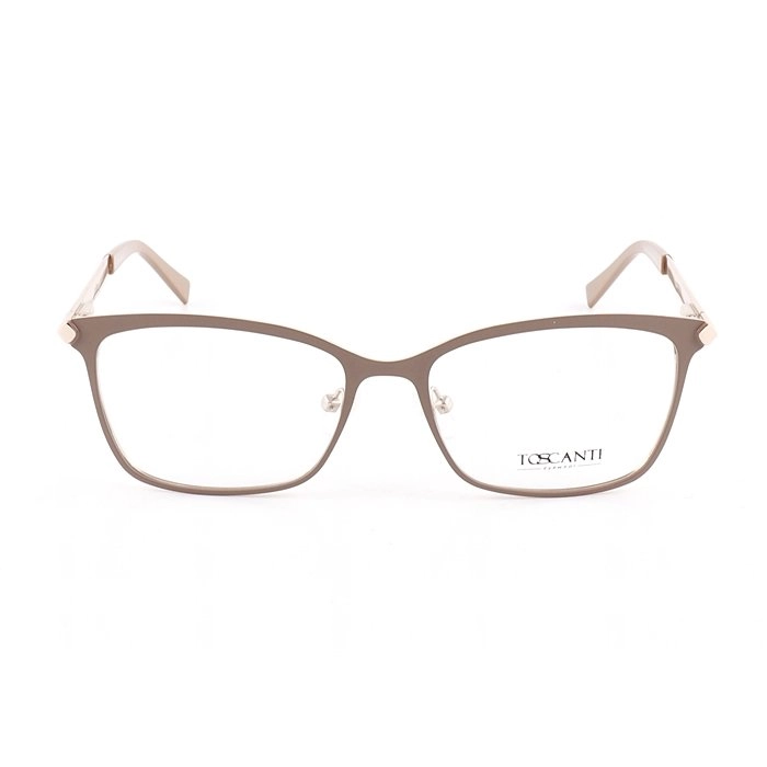 Oprawa korekcyjna marki Toscanti. Posiada sprężyste zawiasy typu flex, które ułatwiają nakładanie okularów. Dodatkowo oprawa lepiej dopasowuje się do kształtu głowy, a zauszniki nie uciskają skroni. Wysoka jakość zastosowanych materiałów oraz trwała powłoka lakieru zapewnia długi czas użytkowania. Oprawa wykonana jest z aluminium co sprawia, że jest lekka i trwała. Okulary dobrze i wygodnie trzymają się na nosie, dzięki nanośnikom wykonanym z miękkiego silikonu.