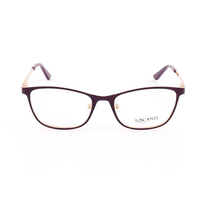 Oprawa korekcyjna marki Toscanti. Posiada sprężyste zawiasy typu flex, które ułatwiają nakładanie okularów. Dodatkowo oprawa lepiej dopasowuje się do kształtu głowy, a zauszniki nie uciskają skroni. Wysoka jakość zastosowanych materiałów oraz trwała powłoka lakieru zapewnia długi czas użytkowania. Oprawa wykonana jest z aluminium co sprawia, że jest lekka i trwała. Okulary dobrze i wygodnie trzymają się na nosie, dzięki nanośnikom wykonanym z miękkiego silikonu.