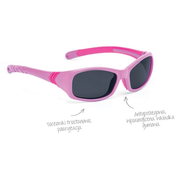 Okulary przeciwsłoneczne dla dzieci wykonane z bezpiecznego i miękkiego materiału. Wewnętrzna strona oprawy wykonana jest z hipoalergicznego polimeru, dzięki któremu okulary są w pełni bezpieczne nawet dla najmłodszych pociech. Jeszcze bardziej miękki mostek dla najwyższego komfortu dziecka.