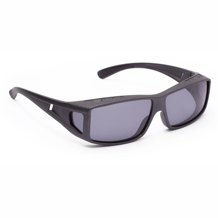 Okulary przeciwsłoneczne do nakładania na okulary korekcyjne o prostokątnym kształcie. Zapewniają 100% ochrony przed promieniami UV-A i UV-B do 400 nm. Posiadają polaryzację, która skutecznie redukuje docierające do naszych oczu odblaski i odbicia promieni słonecznych.Produkt jest oznaczony certyfikatem CE. W komplecie dołączone jest etui oraz woreczek z mikrofibry.