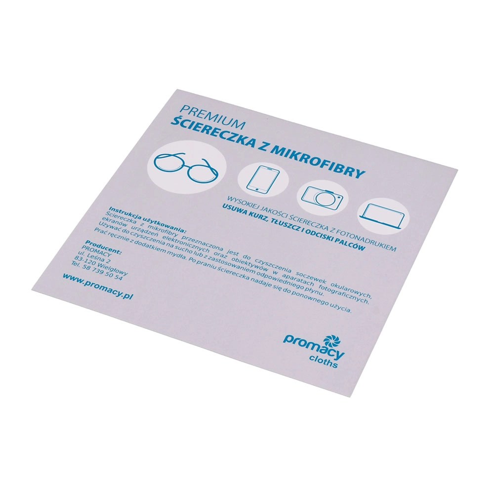 Ściereczki z kolorowym nadrukiem. Idealnie nadają się do czyszczenia: soczewek okularowych, obiektywów w aparatach fotograficznych oraz ekranów telefonów i urządzeń elektronicznych.