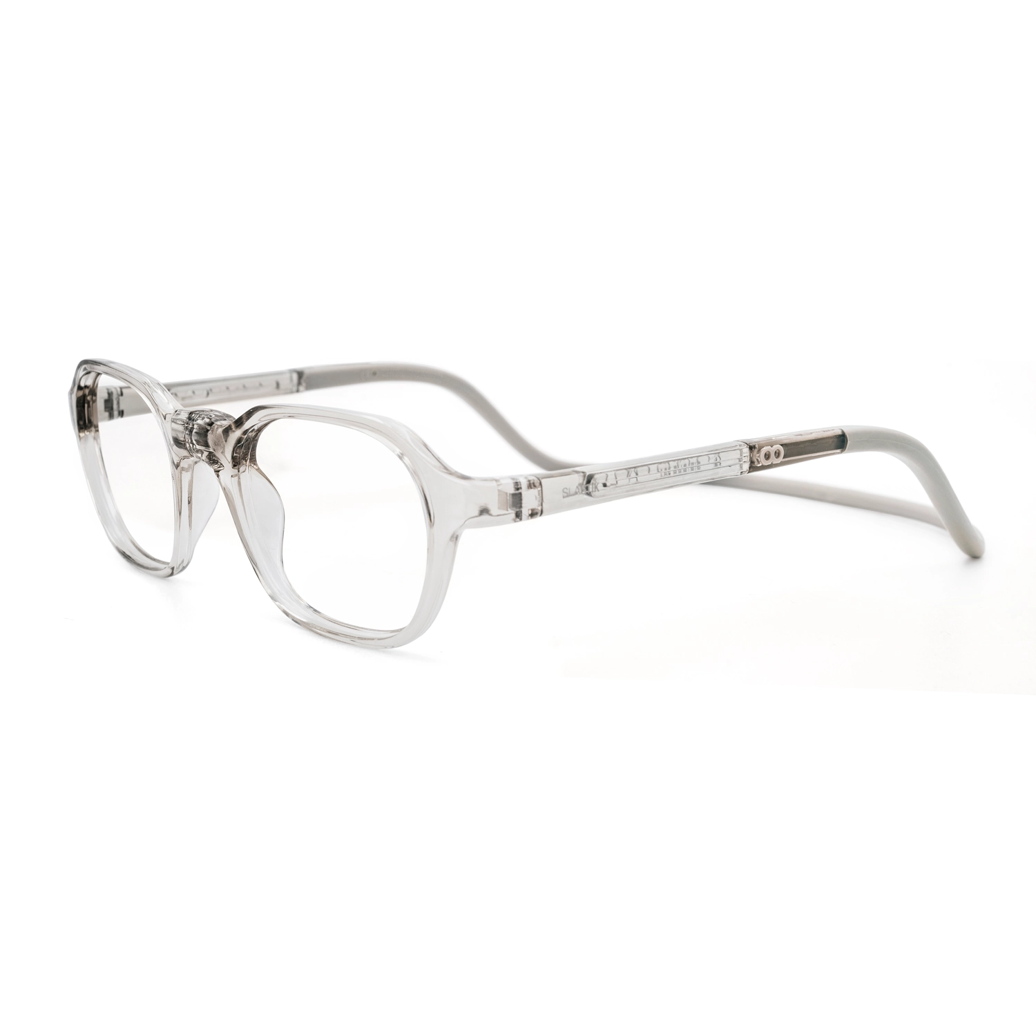 Okulary do czytania magnetyczne marki Slastik łączą w sobie design vintage i nowoczesność. Sidious staną się nieodłącznym elementem twojego codziennego życia, zarówno w domu, jak i na zewnątrz. Ich kwadratowy kształt, przezroczysty kolor z błyszczącym wykończeniem oraz szara opaska na głowę nadają im charakteru.