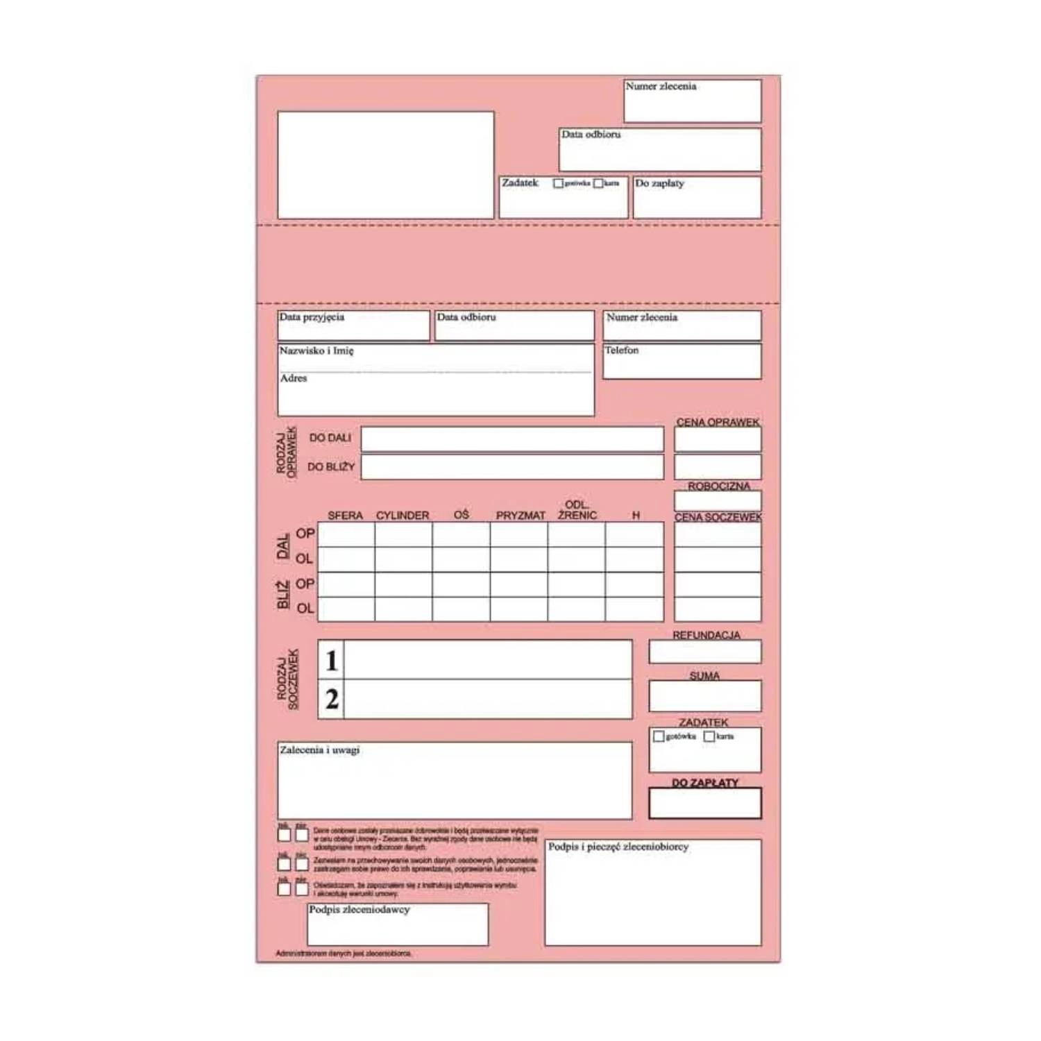 Koperty na prace okularowe bez kopii, z odrywanym paskiem.