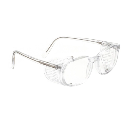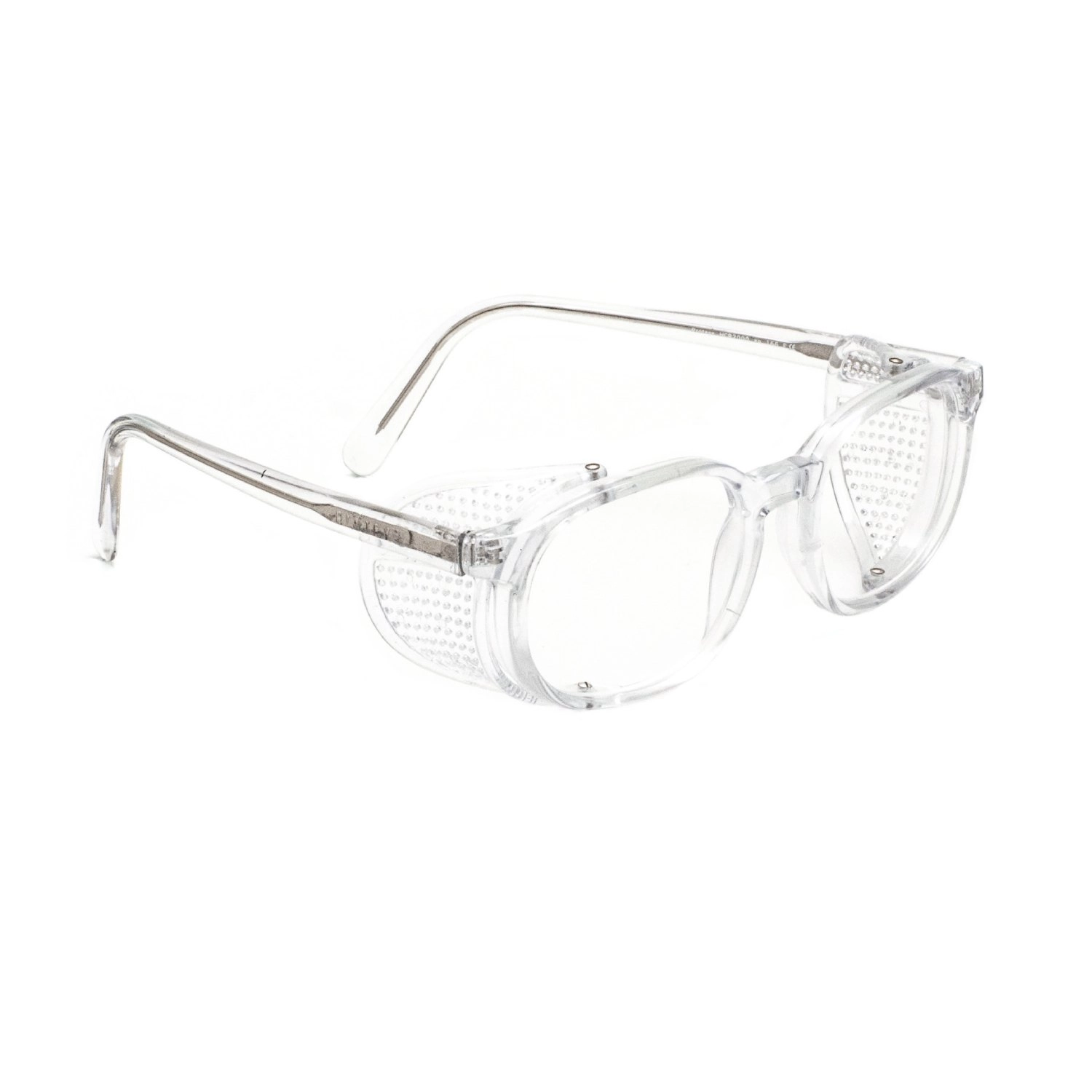 Uniwersalne okulary ochronne o klasycznym wyglądzie, wyposażone w składane boczne osłony wykonane z poliwęglanu odpornego na stłuczenia. Oprawy posiadają soczewki poliwęglanowe plano, które zapewniają doskonałą ochronę oczu. Ramka wykonana jest z trwałego propionianu celulozy, co zapewnia długotrwałe użytkowanie i komfort noszenia. Materiał ten posiada właściwości zbliżone do octanu celulozy (CA), oferując większą odporność na starzenie oraz lepszą stałość kształtów i wymiarów.