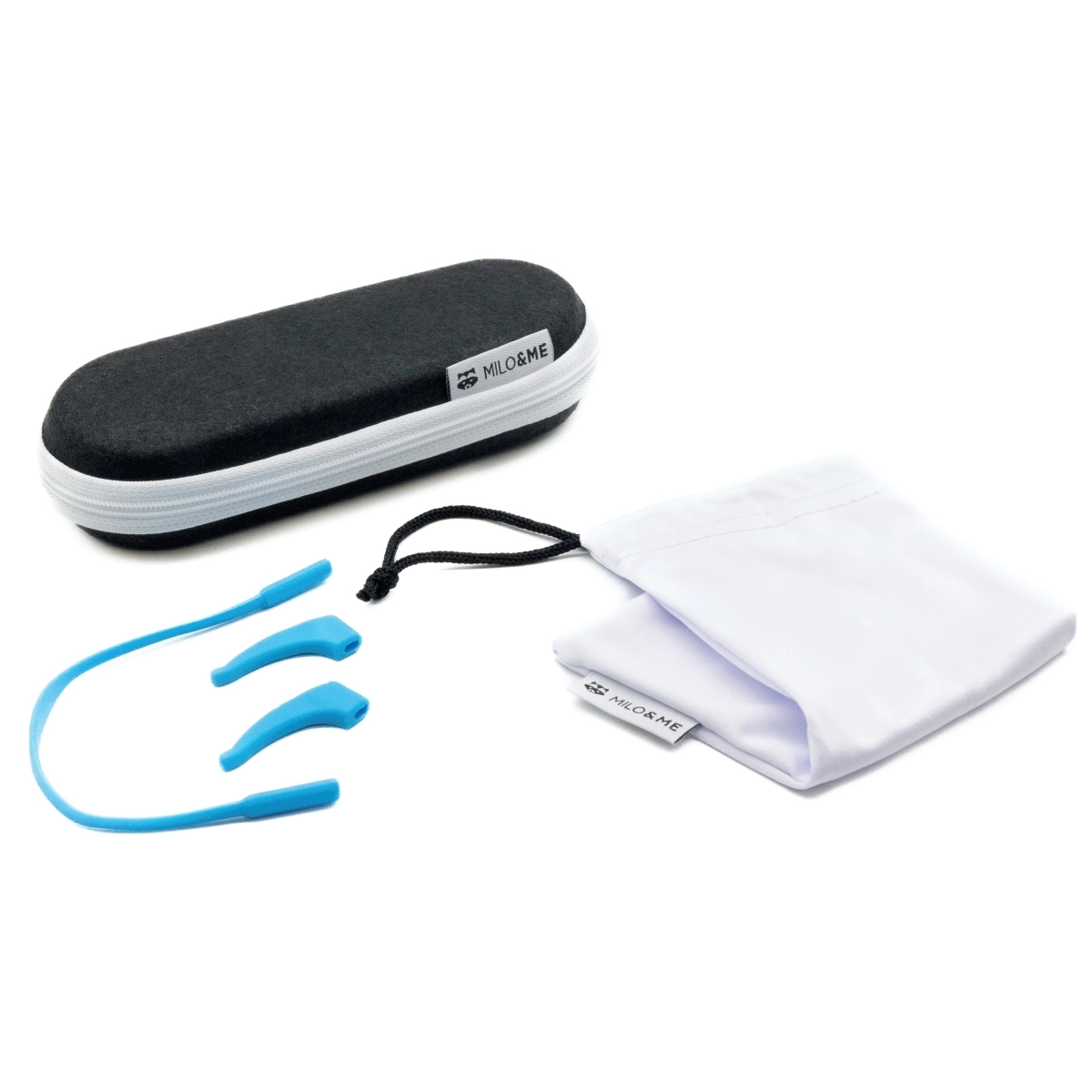 Oprawy Milo & Me pozbawione są dziecięcego designu dzięki czemu zachowują młodzieżowy, modny i atrakcyjny wygląd. Każda oprawa sprzedawana jest z elastyczną opaską, antypoślizgowymi końcówkami zauszników, woreczkiem z mikrofibry oraz etui.