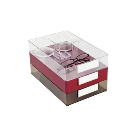 Funkcjonalne i estetyczne pudełka w kolorze czerwonym, idealne do przechowywania prac okularowych. Każde pudełko wyposażone jest w przegródki na soczewki oraz drobne części, co pozwala na wygodne i bezpieczne uporządkowanie elementów optycznych. Doskonałe do użytku w pracowniach optycznych, gabinetach oraz laboratoriach.