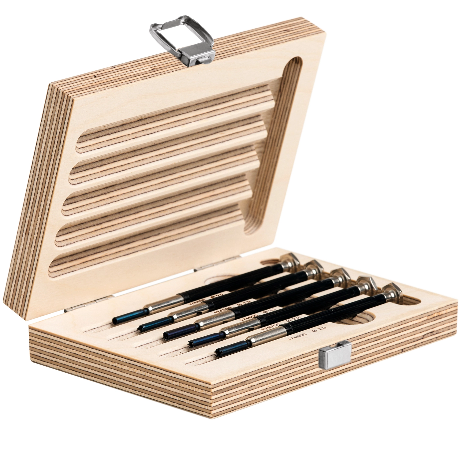- Pięć kluczy do nakrętek z najczęściej używanymi grotami wykonanymi z wysokiej jakości stali
