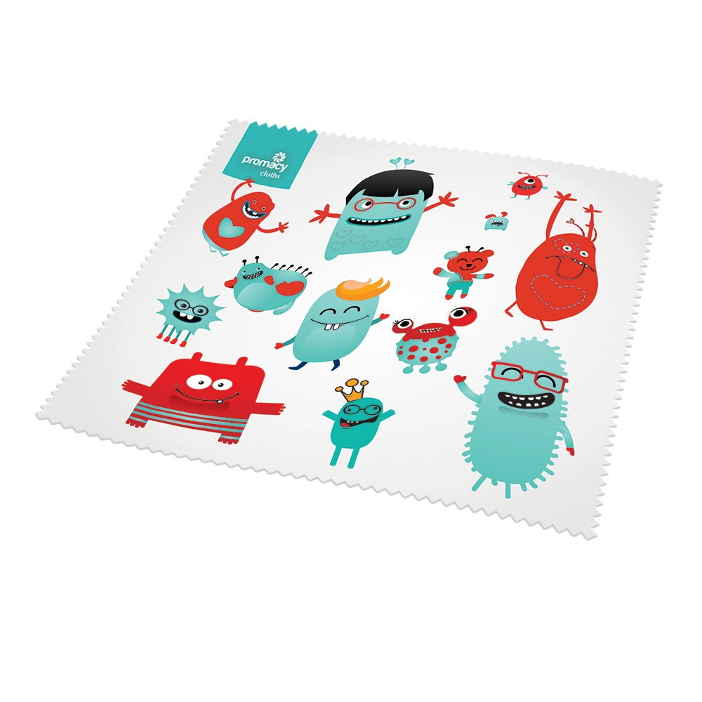 Ściereczki z kolorowym nadrukiem. Idealnie nadają się do czyszczenia: soczewek okularowych, obiektywów w aparatach fotograficznych oraz ekranów telefonów i urządzeń elektronicznych.
