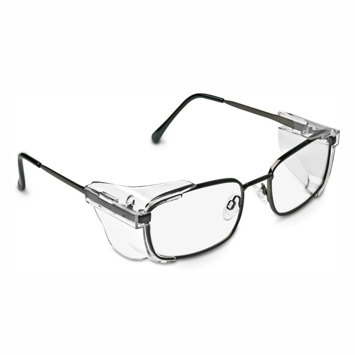 Okulary ochronne z możliwością montażu soczewek korekcyjnych, oprawa wyposażona w osłony boczne. Zawiera soczewki poliwęglanowe, bezbarwne.