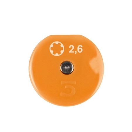 - Kolorowe, okrągłe pokrętło spłaszczone z jednej strony dla uniknięcia toczenia wkrętaka po blacie