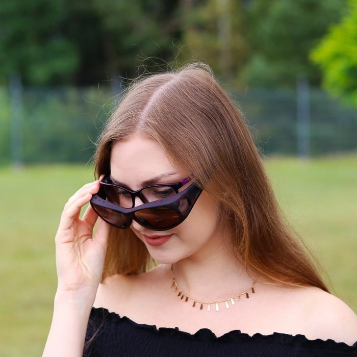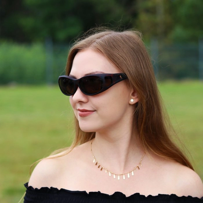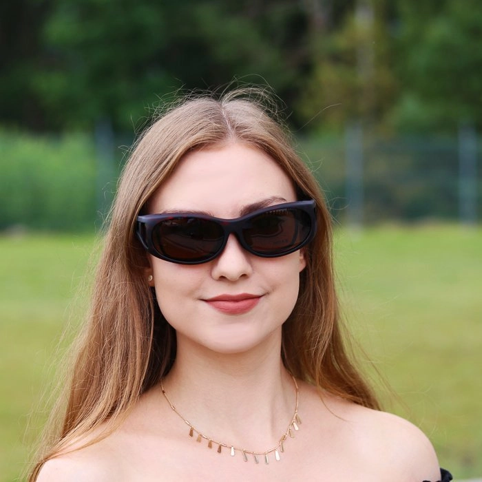 Miękkie w dotyku okulary przeciwsłoneczne do nakładania na okulary korekcyjne o owalnym kształcie oraz ze szczelinami wentylacyjnymi. Zapewniają 100% ochrony przed promieniami UV-A i UV-B do 400 nm. Produkt jest oznaczony certyfikatem CE. W komplecie dołączone jest etui oraz woreczek z mikrofibry.