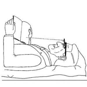 Ekstra lekkie okulary pomocne osobom z problemami kręgosłupa i szyi podczas czytania czy oglądania telewizji w pozycji leżącej. Okulary dostarczane są w miękkim etui.