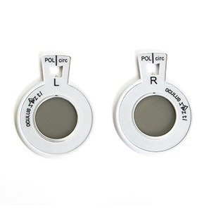 Nasadka z polaryzacją w plastikowej oprawie. Odpowiednia do testu widzenia trójwymiarowego.