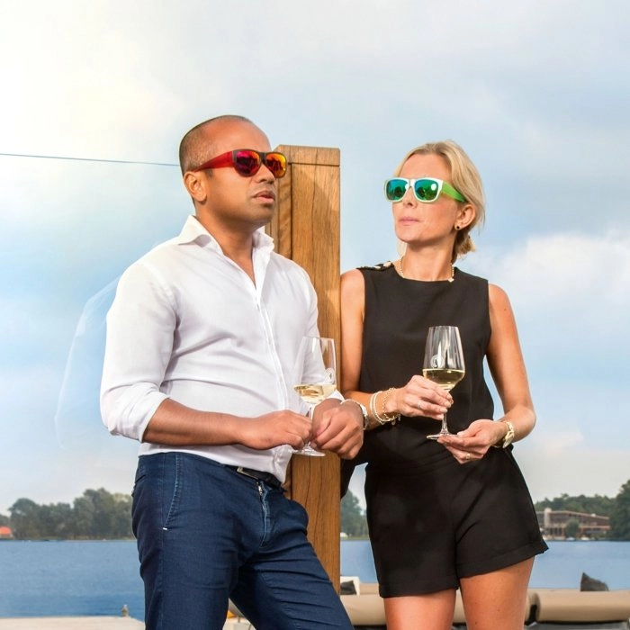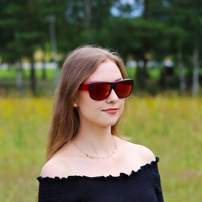 Kolorowe okulary przeciwsłoneczne nakładane na okulary korekcyjne, idealne dla osób, które na stałe korzystają z okularów korekcyjnych.  Posiadają soczewki z lustrzaną powłoką zapewniające 100% ochrony przed promieniami UV-A i UV-B do 400 nm. Produkt jest oznaczony certyfikatem CE. W komplecie dołączone jest etui oraz woreczek z mikrofibry.