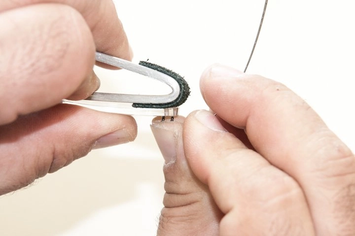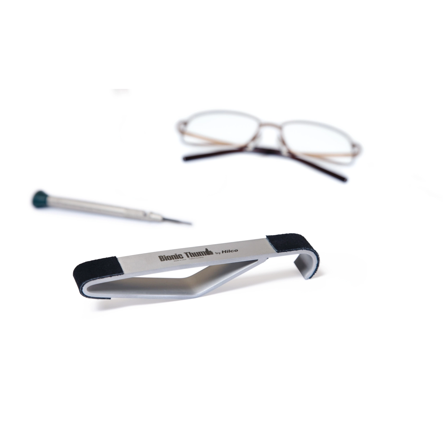 Formowanie opraw okularowych nigdy nie było tak efektowne i łatwe. Bioniczny kciuk wykonany jest ze szczotkowanej stali nierdzewnej. Na dwóch zakończeniach przyrządu znajdują się dwie wykończone miękką skórą zamszową strefy pracy o różnych promieniach gięcia. Bioniczny kciuk daje Ci możliwość idealnego dopasowania oprawy Twojego klienta. Dzięki niemu z tzw. wyczuciem uformujesz zauszniki oprawy czy nadasz krzywiznę oprawie w okolicach mostka. Wykorzystując siłę własnych mięśni masz pełną kontrolę nad przebiegiem procesu formowania. Wyczuwalne jest nawet minimalne zwiększenie naprężenia materiału, który np. stygnie po uprzednim podgrzaniu. Nigdy więcej bolącego kciuka i śródręcza. Brak jakichkolwiek uszkodzeń, wgnieceń i pęknięć na oprawach i zausznikach.